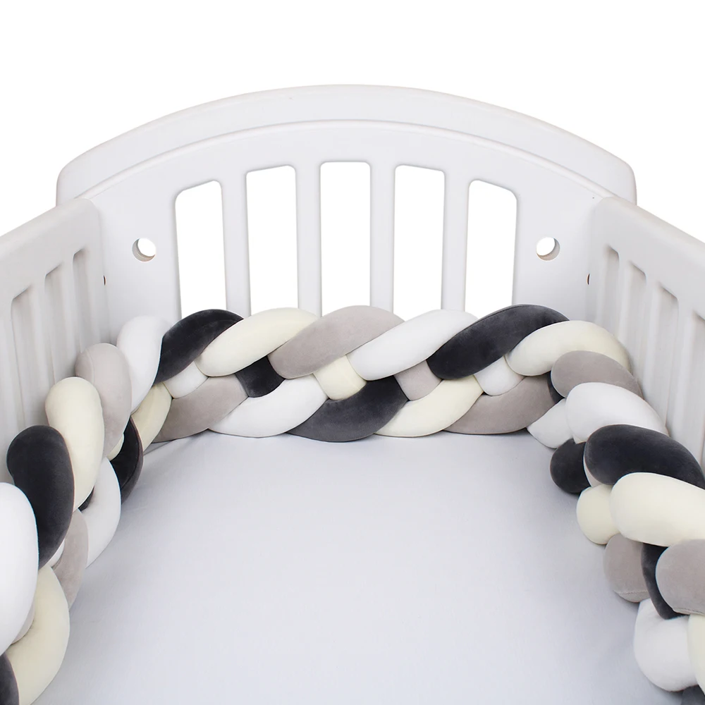 4 Strands Knotted 2.2M/3M/3.6M Baby Bed Bumper Braided Crib Bumper Cotton Knot Pillow Crib Protector Baby Decoration Room